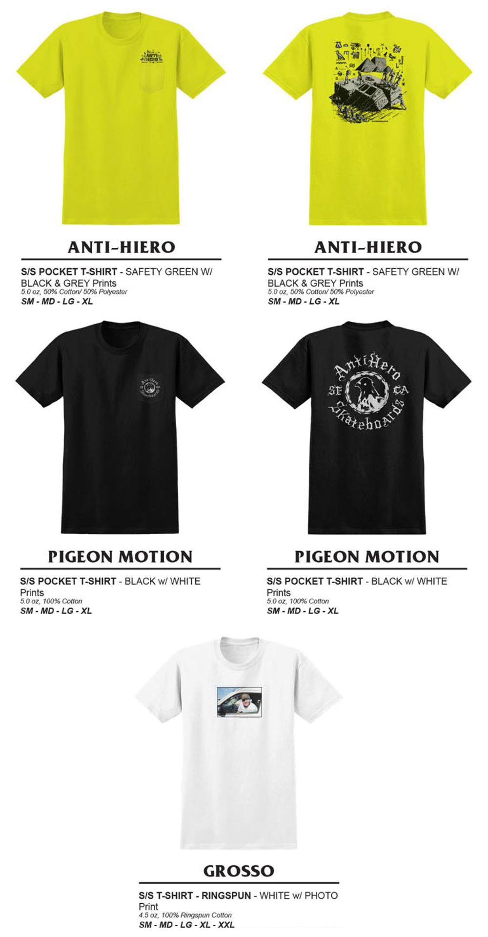 S/S GROSSO、BONELESS IN SPACE & PIGEON INTELLIGENCE などの NEW GRAPHIC、