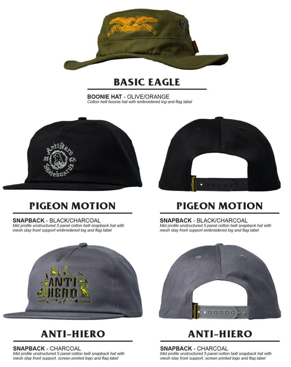 ANTIHERO からは BASIC EAGLE RIP STOP HOOD、HECHO POR SKATE SHORTS、ICE COLD BEANIE、