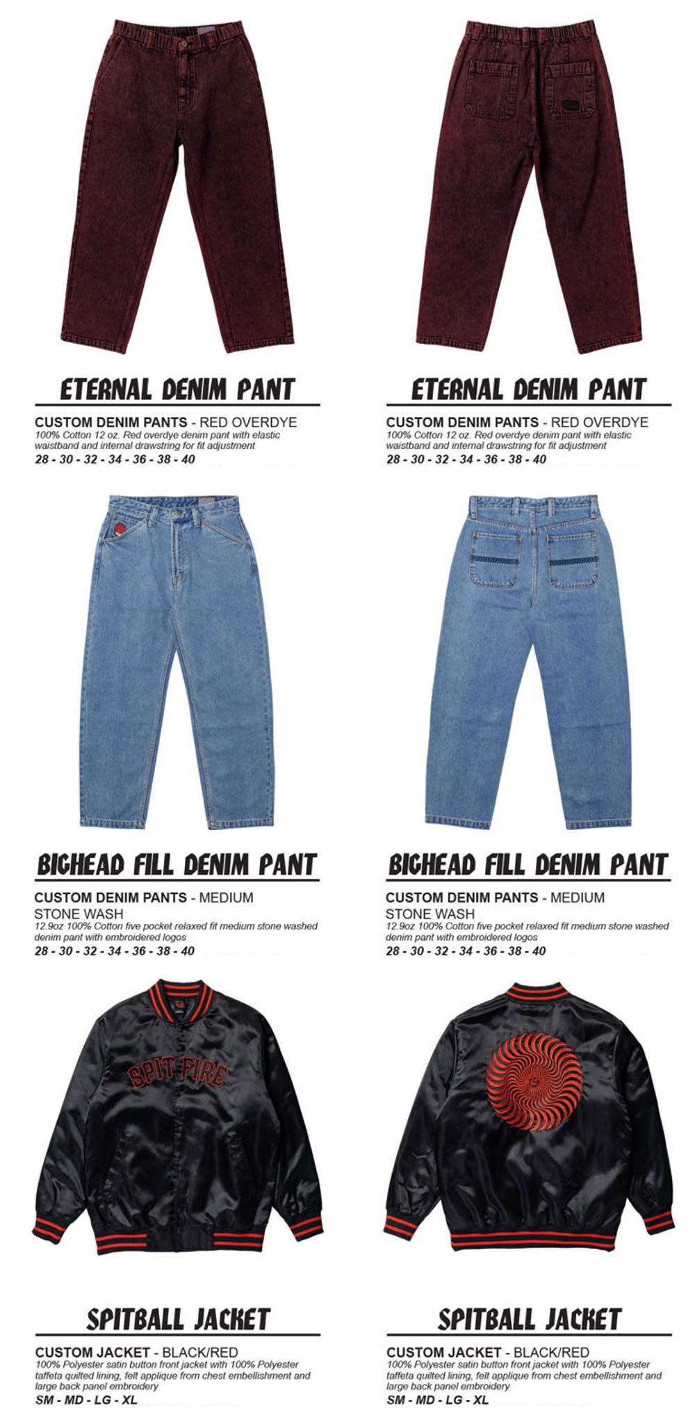 今期のコレクションでは SPITFIRE ETERNAL DENIM PANTS、BIGHEAD FILL DENIM PANTS、